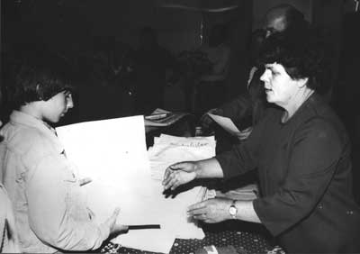 Z dávnější historie: Jakub Hulák je vítán pracovnicí MěNV na přehlídce