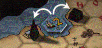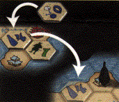 2.       Jedna nebo více figur se odebere z hracího plánu, jestliže jsou všechna s nimi sousedící pozemní pole obsazena kartami.