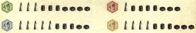 Potom se rozmístí figury. Nejdříve se položí 1 přilba, 1 Buddha a 1 rýžové pole do hlavního města Edo. Potom přijdou do každého města 2 figury a do každé vesnice 1 figura, a to následovně: